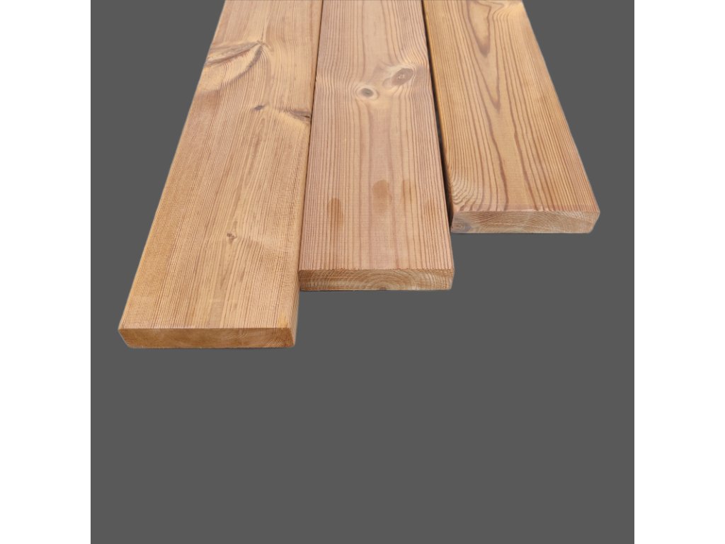 Terasová prkna thermo borovice oboustranná hladká 26/117/4200 mm (26x117x4200) Thermo borovice je speciálně tepelně upravené dřevo borovice. Při výrobě se dřevo zahřívá v tlakové komoře pomocí postupně se zvyšující teploty a páry až na 160-220 ⁰C. Thermo borovice se kvůli rozkladu celulózy a odstranění pryskyřice nekroutí, je stabilní, nebobtná, nemění tvar a nevstřebává vlhkost (ta se drží mezi 5-7 % i na vlhkých či mokrých místech). Kromě odolnosti vůči vlhku a povětrnostním podmínkám, je odolná i proti hnilobě dřeva a škůdcům.